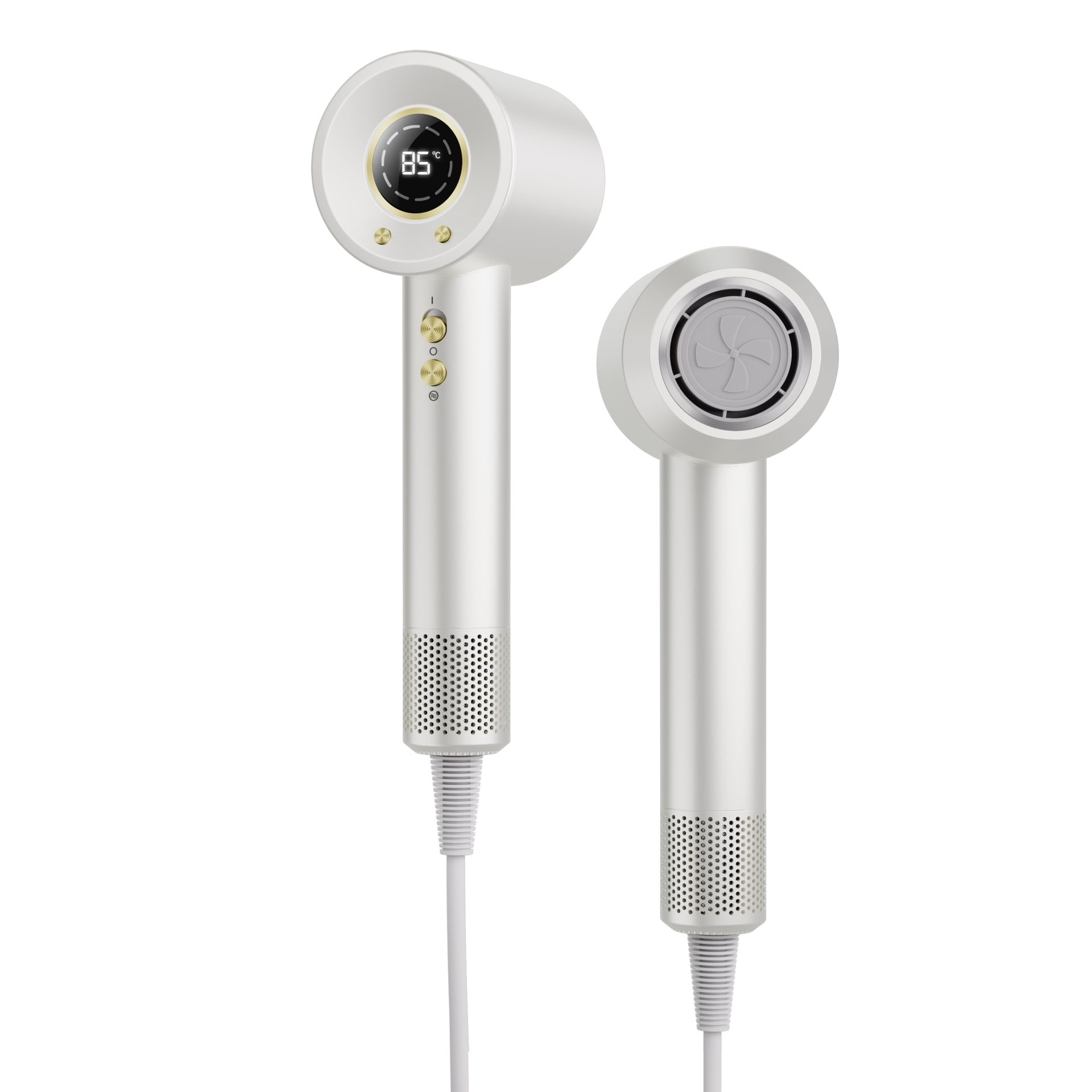 EJanMay M2 high speed hair dryer combines powerful airflow, 4 billion plasma ions, and a smart digital display for faster drying and smoother, shinier hair.
